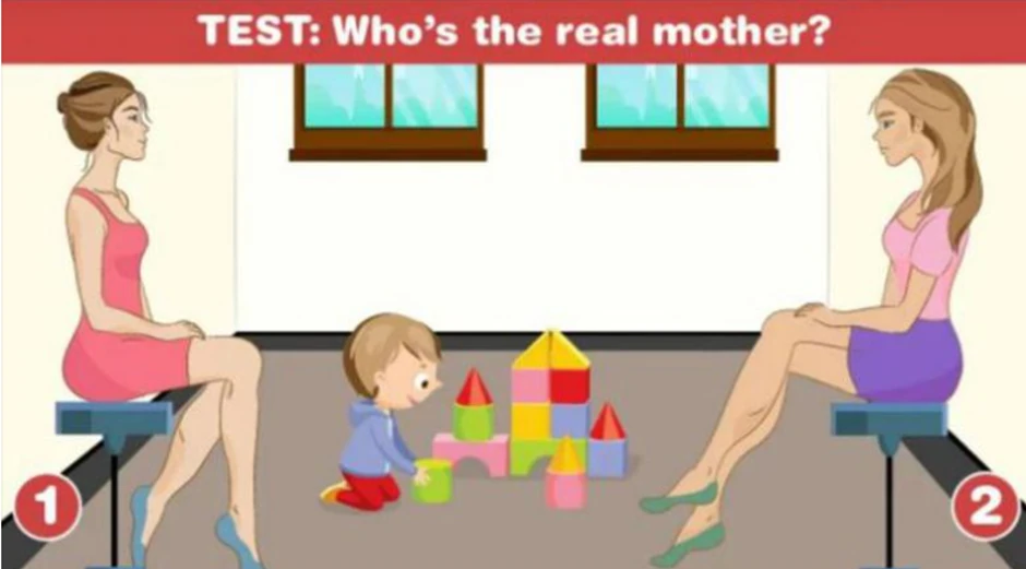 Pogledajte pažljivo ilustraciju ispod i pokušajte da zaključite ko je prava majka deteta koje se igra, od dve žene koje sede jedna naspram druge.