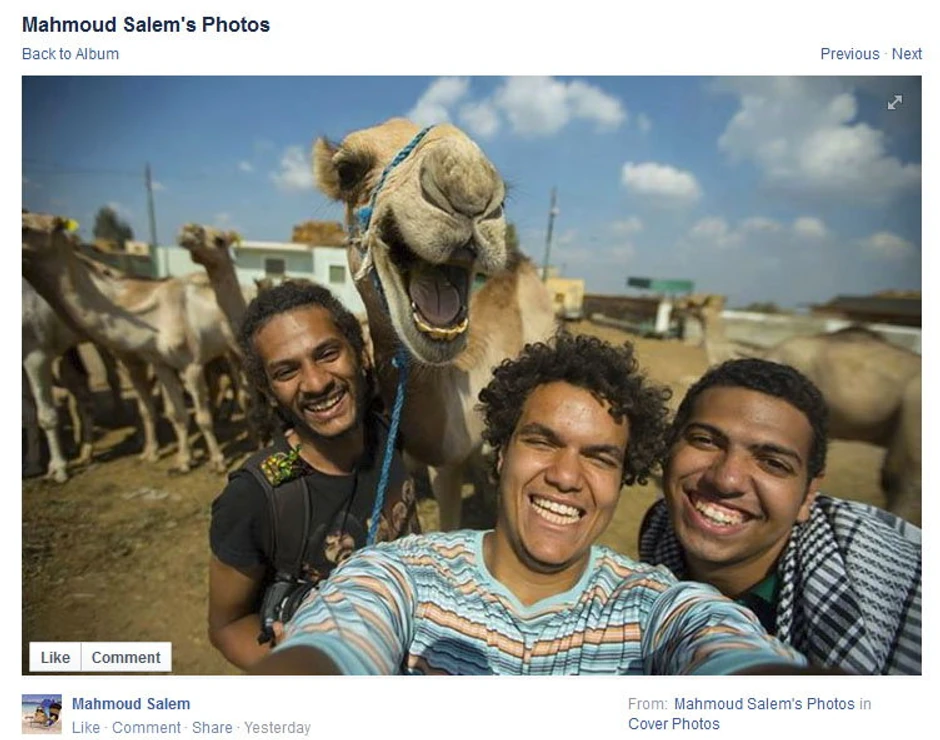 Egipatski biznismen Mahmud Salem podelio je fotografiju na kojoj u društvu prijatelja pozira sa kamilom. Životinji se izgleda baš svideo selfi, čim se ovako simpatično nasmešila. Ona je izgleda posebna.