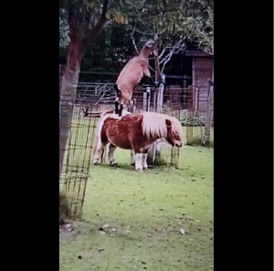 Koza kao poznati penjač u životinjskom svetu ovaj put je iskoristila ponija da dođe do lišća da jednog drveta i obrsti ga, a on je zadatak spremno prihvatio i sve vreme, sa kozom na leđima, strpljivo i mirno čekao da se njegova prijateljica najede i zasladi.