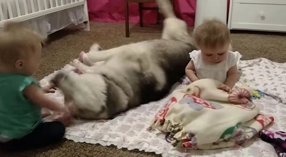 Bliznakinje Hejli i Kajli su se igrale, a onda im se pridružio haski Džuno, koji je odlučio da im priredi malo zabave.