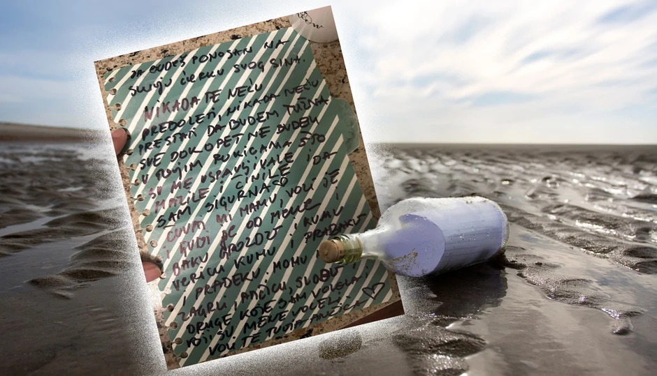 Šetajući obalom Tihog okena u Los Anđelesu, par iz Amerike naišao je na pismo napisano na njima nepoznatom jeziku. Nakon što su saznali da se radi o srpskom jeziku, obratili su se srpskim članovima na sajtu Redit. "Ovo pismo smo našli na obali, da li nam možete pomoći sa prevodom kako bi saznali o čemu se radi. Molim vas" - glasila je molba američkog para.