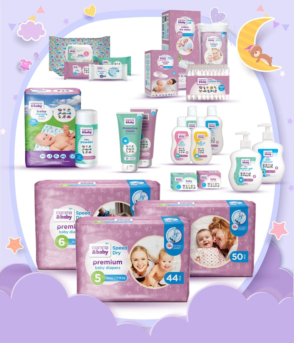 Specijalizovana linija proizvoda za najmlađe, Mamma&baby, upravo su proizvodi na koje svaka mama može da se osloni. Kako prvi meseci dečijeg života uglavnom prolaze u hranjenju i spavanju, najvažniju ulogu u ovom periodu imaju pelene.