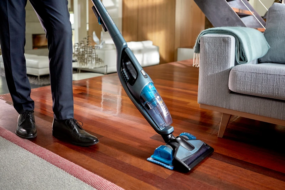 Poseduje dopunjivu litijum-jonsku bateriju koja traje između 40 i 60 minuta, zavisno od modela usisivača, tako da može da potraje i nekoliko usisavanja. Još jedna prednost je što poseduje i mali ručni usisivač za usisavanje mrvica sa stola i delova kuće gde je potrebno detaljnije čišćenje, poput kreveta i garnitura za sedenje. Međutim, ono što ga izdvaja od drugih jeste što, uz samo jedan “klik”, možete da montirate dodatak za mokro brisanje podova te na taj način dobijate štapni usisivač koji i usisava i briše u jednom potezu!