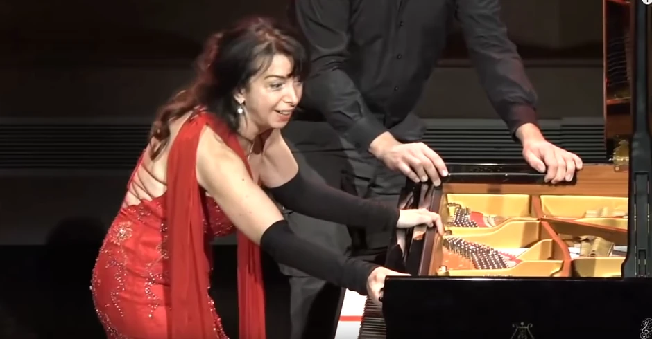 Kad je klavir ove pijanistkinje propao kroz binu s njom, ona je to podnela na profesionalan način, sa osmehom na licu nastavila je da svira.