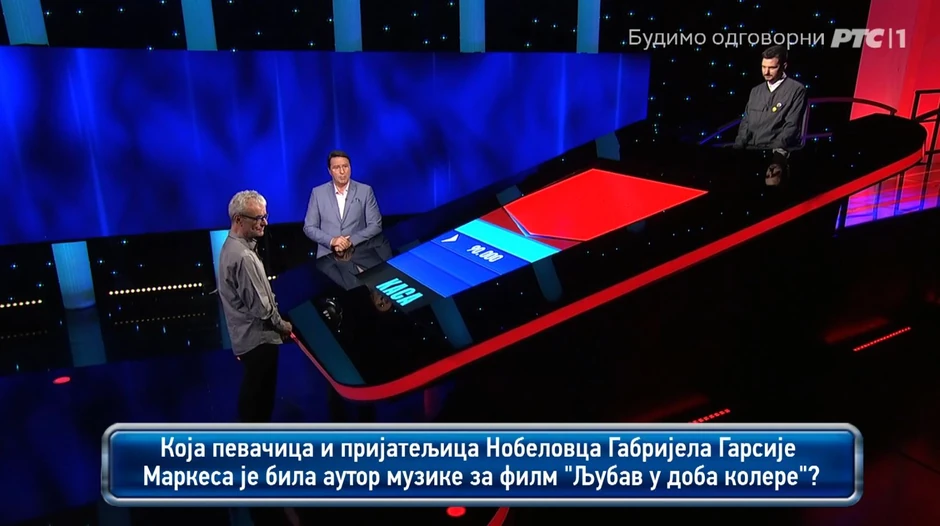 Naime, u pitanju posvećenom jednom od najboljih i ekranizovanih dela Markeza, "Ljubav u doba kolere" bilo je pitanje koja pevačica je bila autor muzike za film, a, istovremeno i Markezova prijateljica.