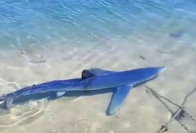 Ribari koji su se zatekli u marini u Glifadi nisu mogli da veruju svojim očima kada su videli plavu ajkulu kako pliva pored čamaca.