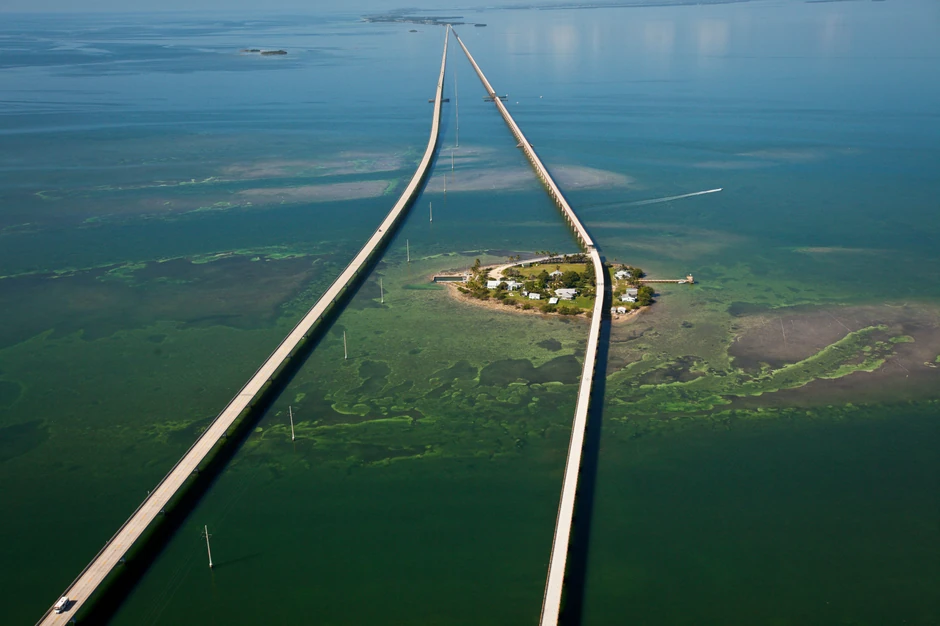Mostovi i autoput omogućavaju vozačima da se kreću preko otvorenih voda Atlantskog okeana, zaliva Floride i Meksičkog zaliva.