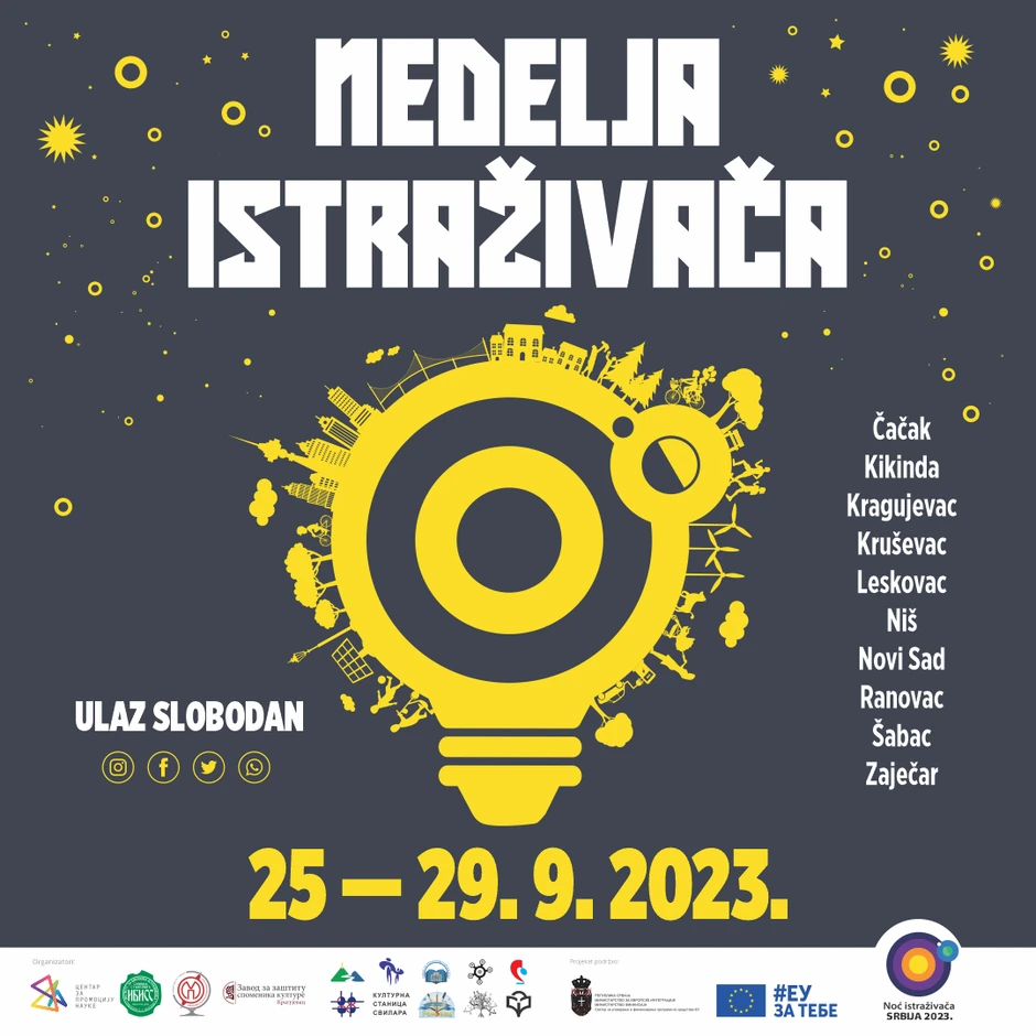 Kragujevac će kroz set interaktivnih radionica probuditi maštu učenika i njihovo interesovanje za nauku, te odgovoriti na pitanja šta povezuje nauku i umetnost, šta radi istraživač i da li je nauka rezervisana samo za naučnike.