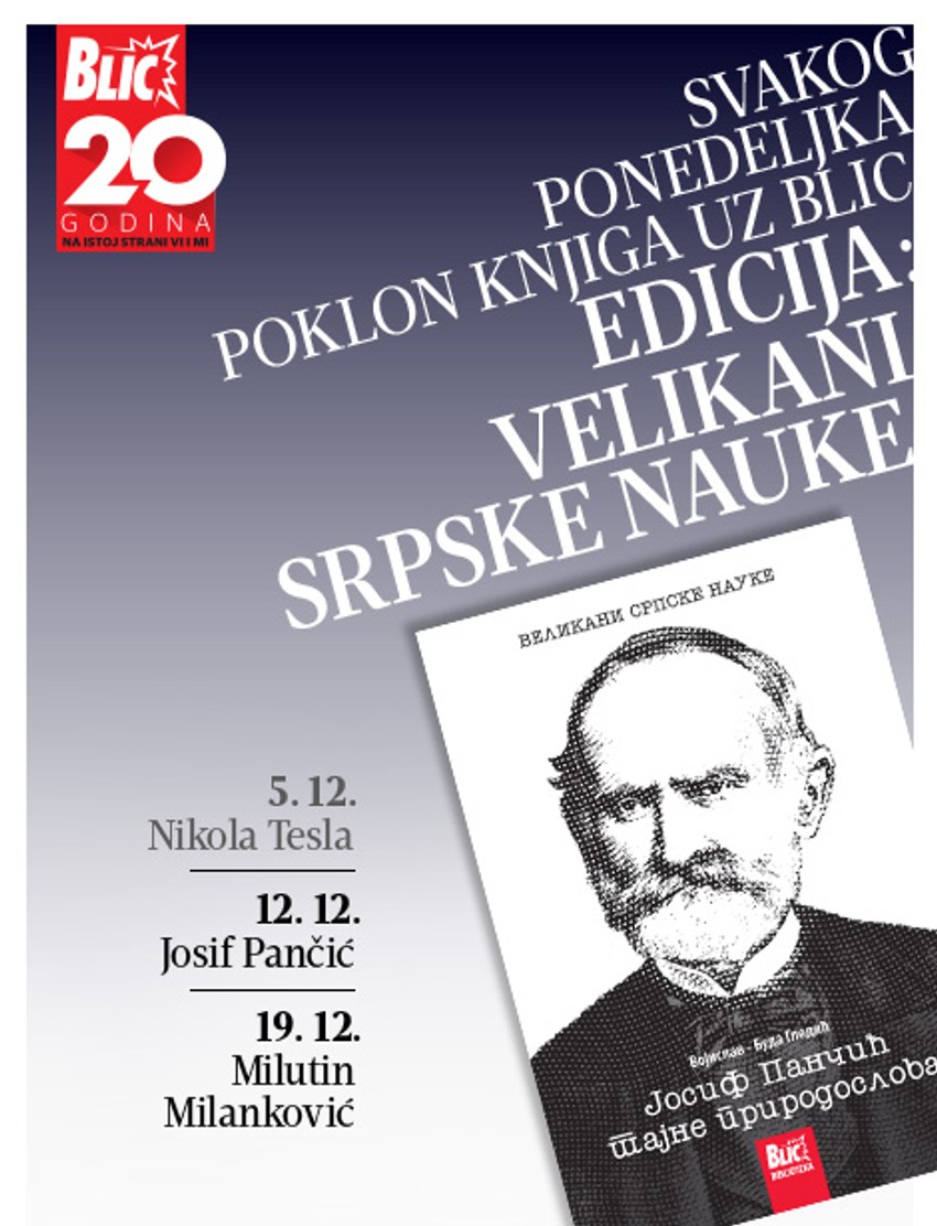 Samo uz "Blic" jedinstvena edicija o velikanima srpske nauke iz kojih možete saznati sve o životu, radu i slavi Tesle, Pančića, Milankovića... Danas, 12. decembra, "Blic" Vam poklanja knjigu "Josif Pančić - Tajne prirodoslova".