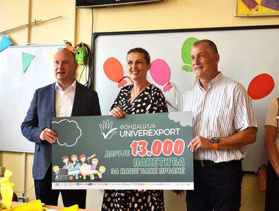 Univerexport, najveći domaći trgovinski lanac, osnovao je Fondaciju sa ciljem usmerenosti svojih projekata na podršku obrazovanju i sportu naših najmlađih. Ova inicijativa je rezultat temeljnih ciljeva i motiva postojanja Fondacije – podržati pozitivne transformacije društva kroz projekte namenjene našoj deci – našem najboljem. Svaki poklon paket predstavlja više od običnog materijala; on simbolično označava početak novog poglavlja u životima ovih mališana.