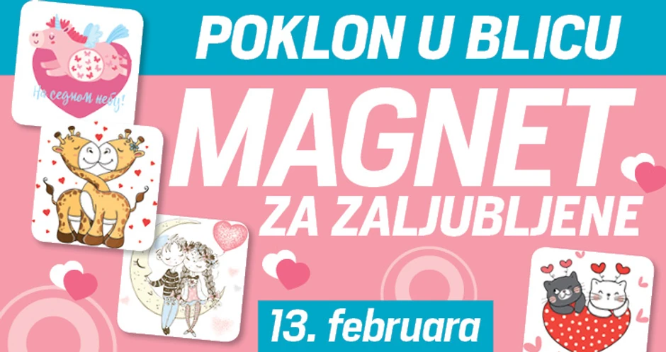 Ne propustite „Blic“ od 13. februara jer vas očekuje fantastični poklon – magnet za zaljubljene. Izjavite ljubav na originalan način i privucite svoju voljenu polovinu tako jako baš kao što je i naš magnet.