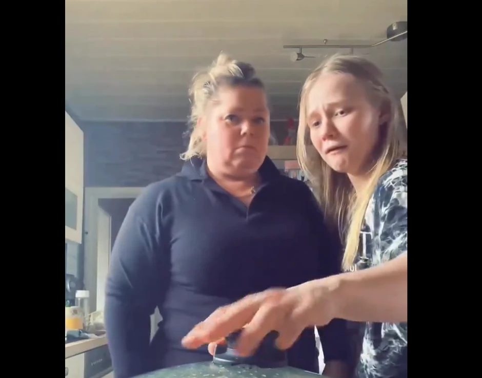 Majka je potom, ne znajući šta se dešava uplašeno dotrčala do kuhinje, međutim, kada je videla o čemu se radi, poklopac je odmah stavila na tiganj i ćerku pogledala u stilu "da li si ti normalna?".