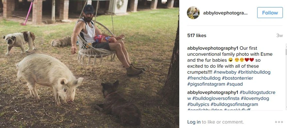 Par iz Sidneja, koji je usvojio Oliv, prethodno je imao tri kuce i bebu na putu, koja je sada novi član porodice, a francuski buldozi i prasence Oliv je prosto obožavaju.