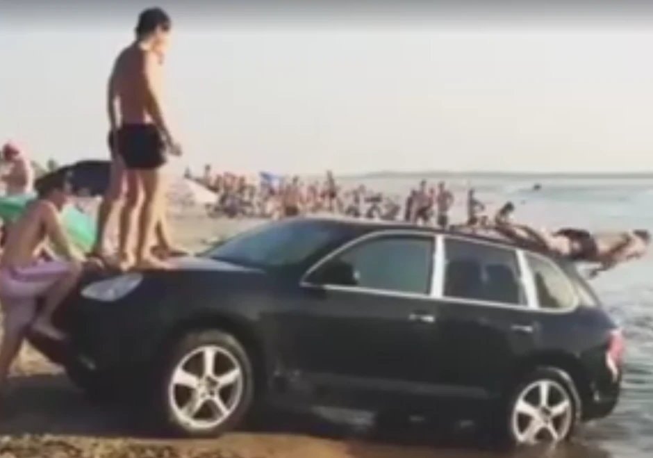 Momci iz Volgograda u Rusiji osmislili su novu aktivnost na plaži. Njima je "porše kajen" poslužio kao tobogan, i ne deluje da su ijednog trenutka zažalili što se deo automobila nalazi u vodi.