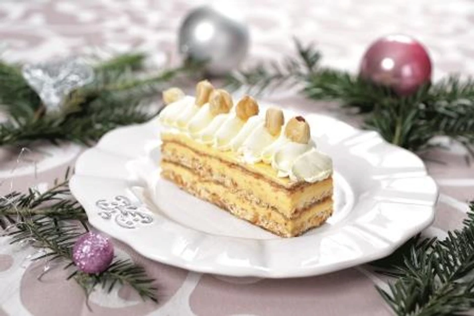 Za drugi fil karamelizujte šećer i spustite lešnike, pa izmešajte. Smesu preručite u uljem podmazan pleh. Kad se ohladi, sameljite je i sastavite sa umućenim šlagom. U okrugle kalupe ređajte koru sečenu na veličinu kalupa, prvi fil, drugi fil, koru i tako dok ne utrošite materijal. Završite umućenim šlagom. Pored ovog i drugih slasnih recepata, uz novi broj magazina „Blic žena“ na poklon ćete dobiti i kesicu „Horgoškog začina“, dodatak jelima s povrćem, uz koji će vaša trpeza biti još ukusnija.