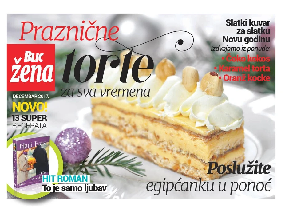 Uz novi broj magazina "Blic žena" od subote 22. decembra na kioscima vas čeka specijalni dodatak sa receptima za praznične torte za sva vremena, a naša preporuka je da u ponoć poslužite egipćanku.