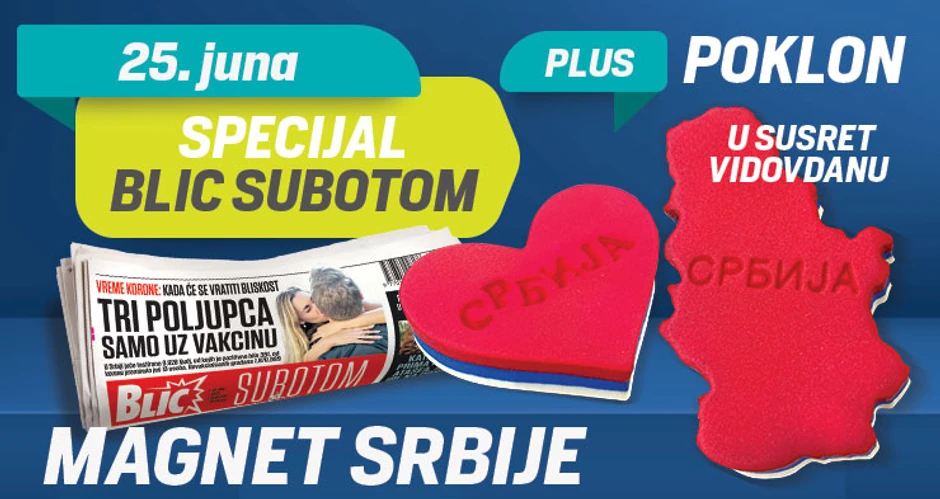 U specijalnom izdanju "Blica subotom" sutra, 25. juna, potražite na poklon magnet Srbija.
