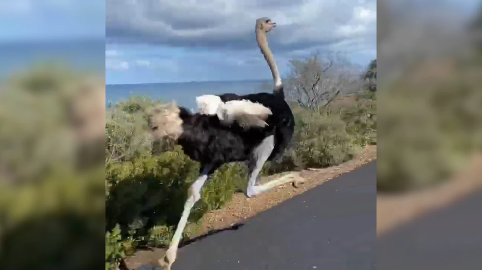 Biciklistima koji su se trkali na ulici u Južnoafričkoj Republici pridružio se jedan neočekivan rival - noj, koji je pokušao da prestigne grupu ljudi na dvotočkašima.