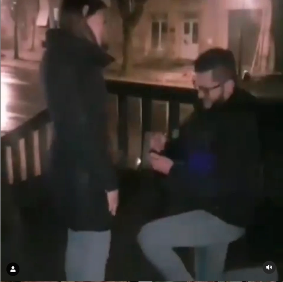 Dean Jadanić zaprosio je svoju devojku Anu Krznarević ispred zgrade petrinjskog Doma zdravlja, prenosi "Jutarnji.hr".