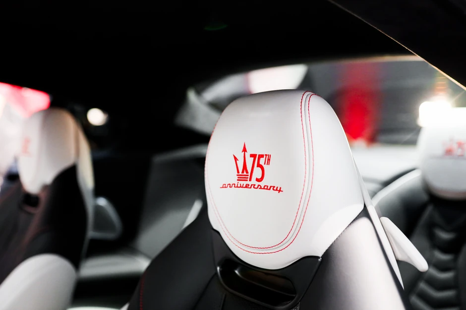 Na centralnom poklopcu felne, kao i na naslonu za glavu na vozačkom i suvozačkom sedištu, apliciran je specifičan logotip kojim se obeležava jubilarna 75-godišnjica, dok su sedišta i ostatak enterijera presvučeni najfinijom dvobojnom kožom koja je prošivena crvenim koncem, što je dodatno ukombinovano sa mat 3D karbonskim detaljima.