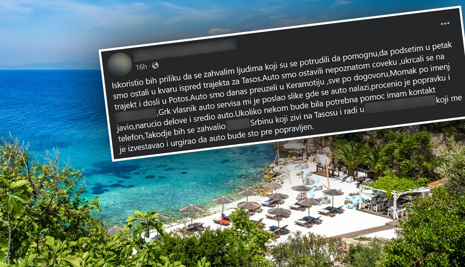 Priča koja vraća veru u dobre ljude desila se nedavno u Grčkoj, kada je tokom letovanja jednoj srpskoj porodici automobil ostao u kvaru. Suočeni sa neočekivanim problemom, ispred trajekta za Tasos, ostavili su svoje vozilo u ruke potpunog stranca - Grka, nadajući se najboljem ishodu. I tako je i bilo.