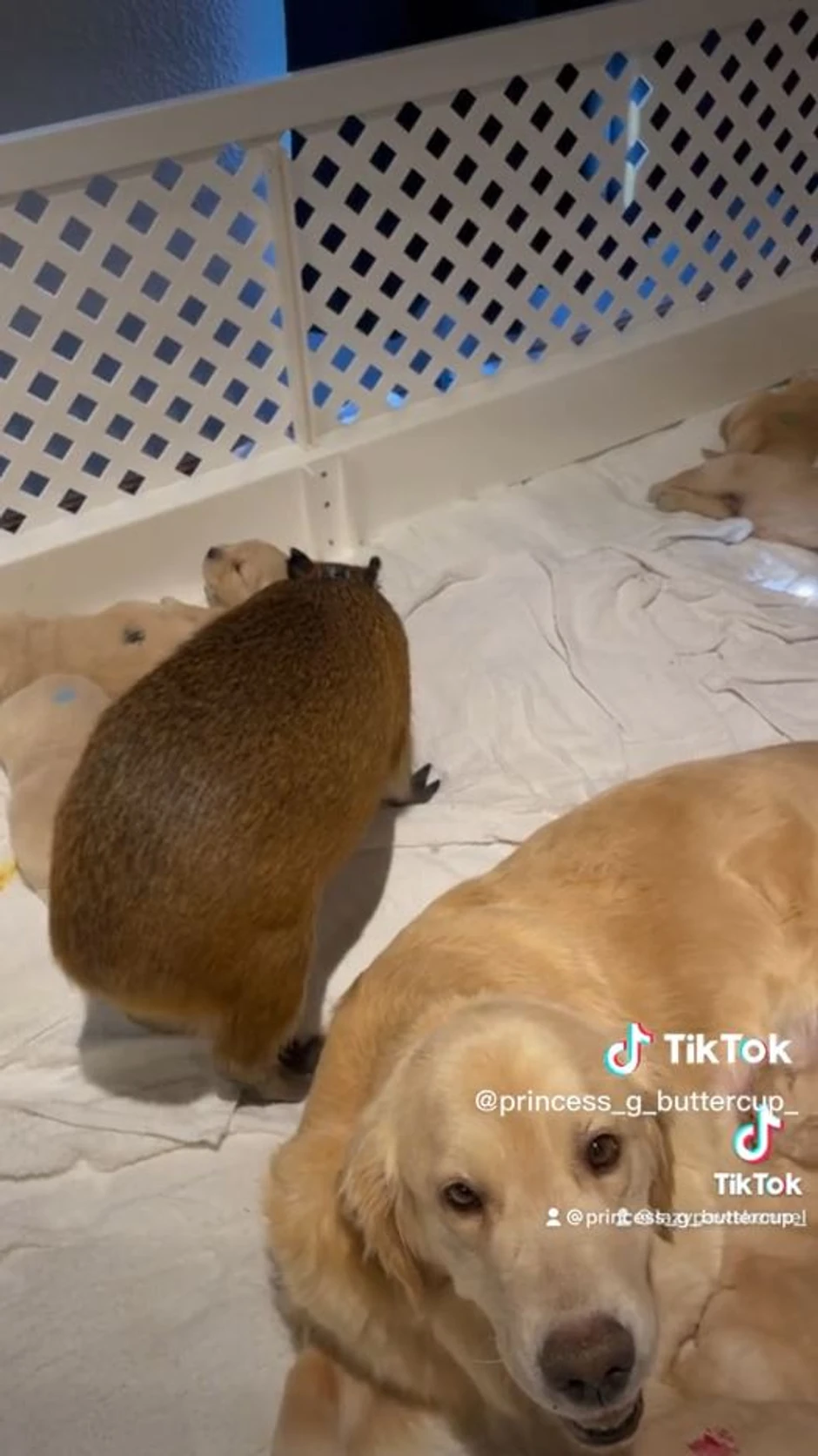 Jedna korisnica Tiktoka pokazala je kako kapibare i psi mogu da budu najbolji prijatelji. Njen zlatni retriver je dobio kučiće, a ljubimica kapibara je odmah došla da se pozdravi sa celim leglom.