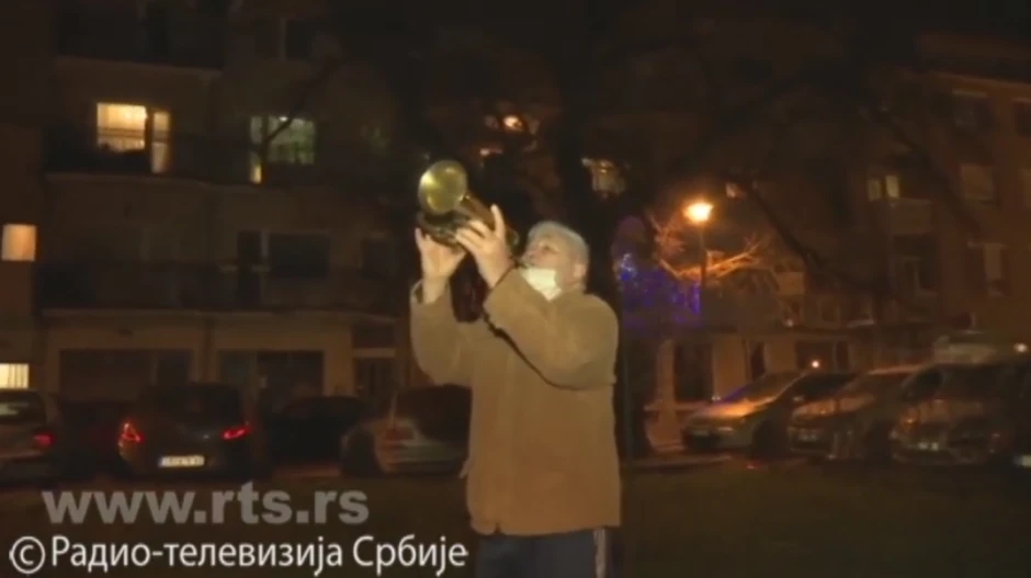 "Priključite se, da damo podršku medicinskim radnicima! Komšije!", već nekoliko večeri glasom i trubom u centru grada, 75-godišnji Slobodan Stolić, nastavnik muzike u penziji i član grupe "Stari zvuci" poziva Šapčane da aplauzom bodre bele mantile, piše "RTS".