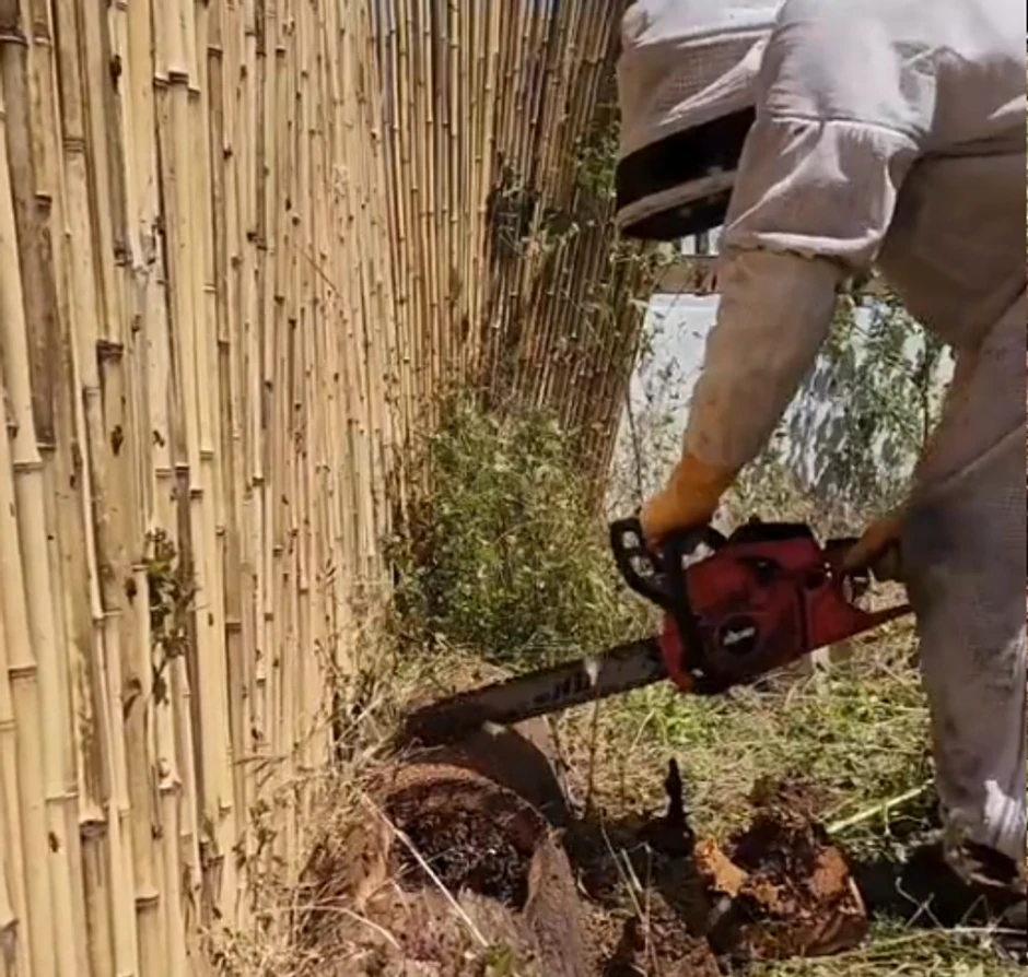 Motornom testerom je počeo da seče drvo, a onda je iz njega počeo da izlazi ogroman roj pčela!