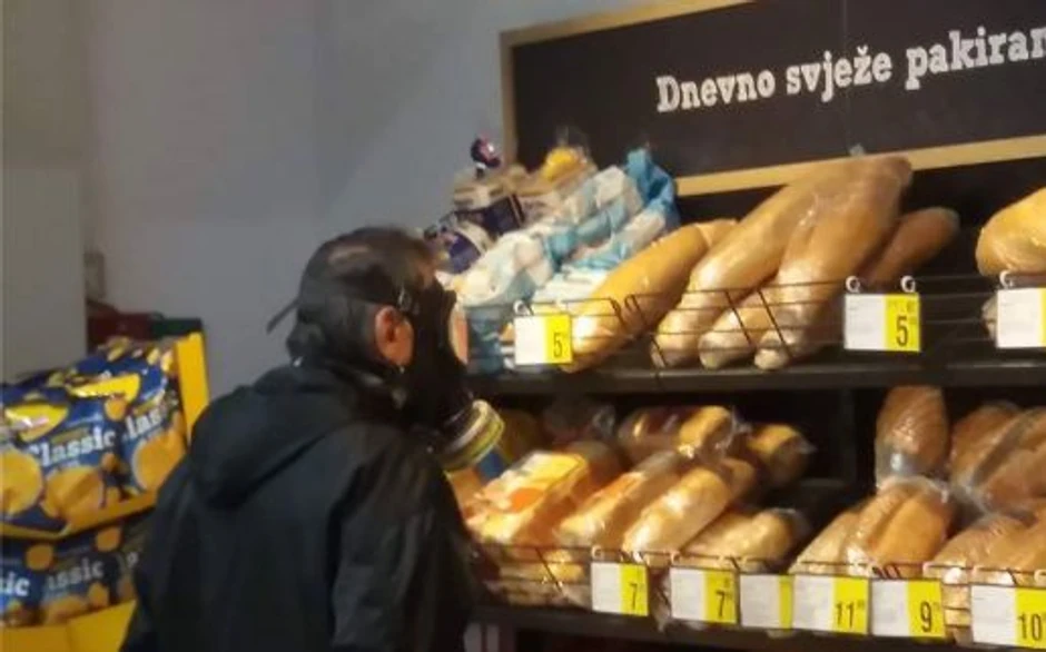 Jedan od takvih je objavljen na Fejsbuk stranici "Dnevna doza prosečnog Dalmatinca". Gospodin je ispod maske kakvu smo viđali u seriji "Černobilj", pažljivo posmatrao policu sa hlebom i čini se da mu je dugo trebalo da odluči koji će da kupi, piše index.hr.