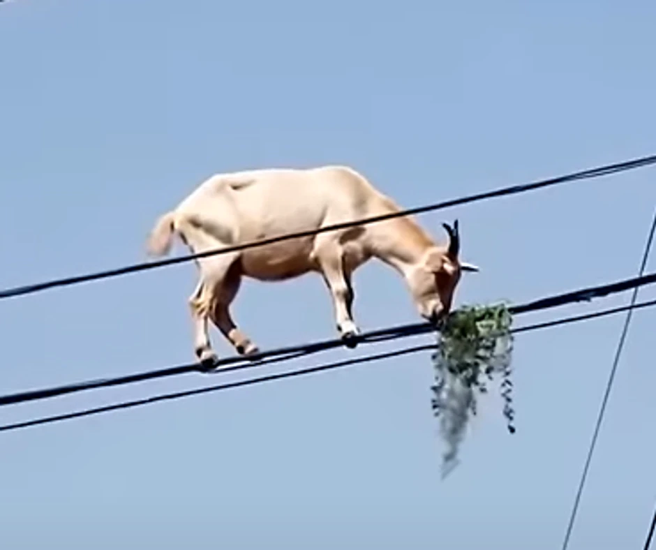Snimak koji je nedavno preplavio društvene mreže ostavio je mnoge u čudu onda kada je, na više od šest metara iznad tla uočena koza koja je stojala na visokonaponskim žicama dalekovoda i mirno grickala lišće.
