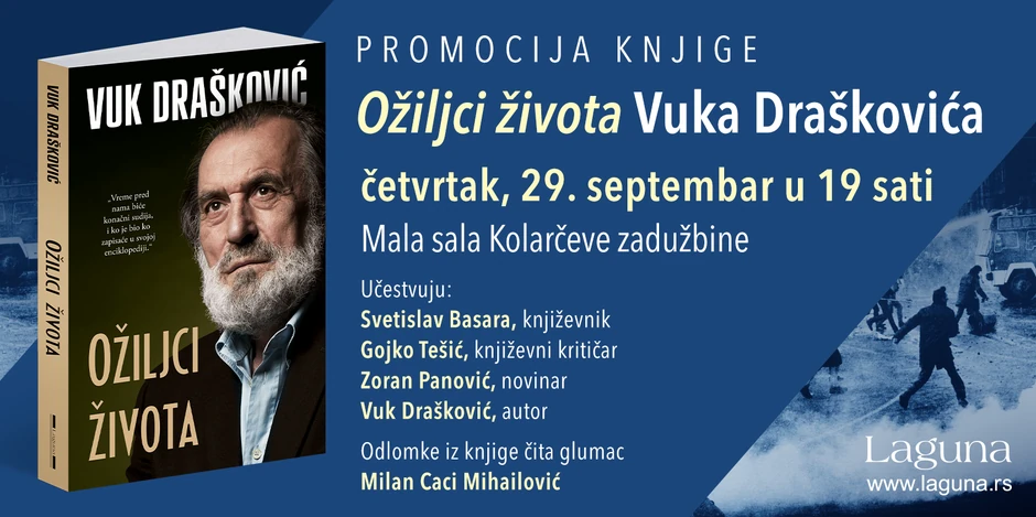 U četvrtak 29. septembra od 19 sati, u Maloj sali Kolarčeve zadužbine biće predstavljena autobiografska knjiga Vuka Draškovića „Ožiljci života“.
