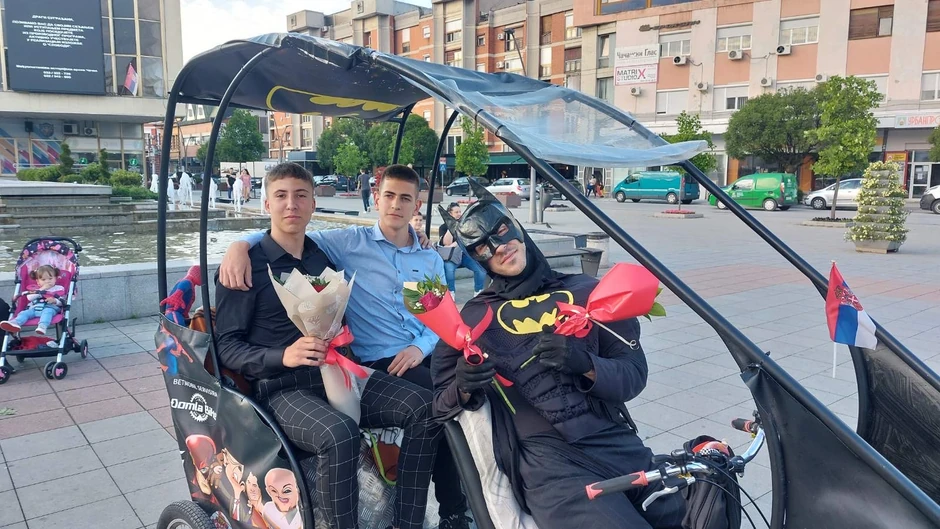 - Jedan od maturanata mi je poslao poruku i pitao da li mogu da ih vozim na maturu u petak i ja sam oberučke prihvatio, jer me je ideja oduševila i zaista je bila neobična. Seli su u moju rikšu, ja sam ih odvezao u odelu Betmena. Kad smo stigli svi su bili pozitivno iznenađeni, slikali su i snimali dok smo dolazili, a potom smo se i provozali jedan krug - kaže za RINU Dragan Tolić, vozač jedine rikše u Zapadnoj Srbiji.