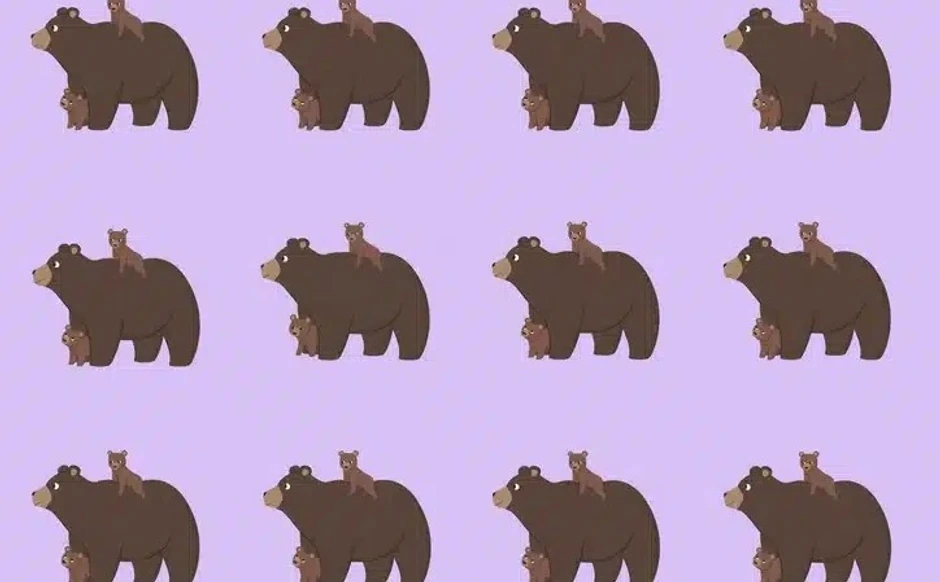 Pred vama je niz simpatičnih medveda i njihovih mladunaca. Na prvi pogled sve deluje isto, ali među njima se krije jedan par koji ima malu, ali jasnu razliku. Imate 15 sekundi da ga pronađete.