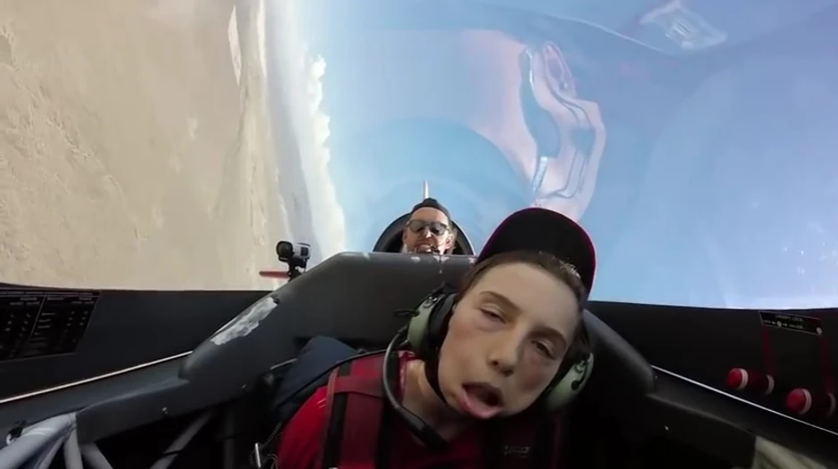 Video-snimak dečaka koji od 12 godina koji je dobio priliku da leti u avionu i pritom oseti silu od 8G nasmejao je korisnike interneta.