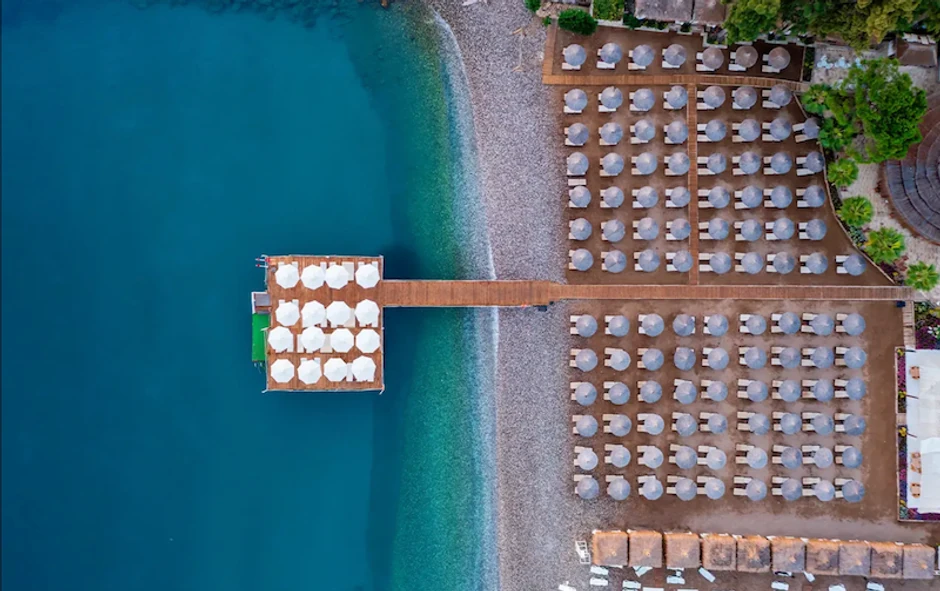 Turkiz Deluxe Resort 5* nalazi se u Kemeru, na svojoj plaži, a od sletanja na aerodrom u Antaliji, deli vas vožnja od 58 km, dok je za posetu centru i obilazak starog grada Antalije potrebno prevaliti nešto manje – 44 km. Hotel je renoviran 2020. godine, plaža je šljunkovita, a korišćenje ležaljki i suncobrana se ne naplaćuje dodatno, već je uključeno u uslugu.