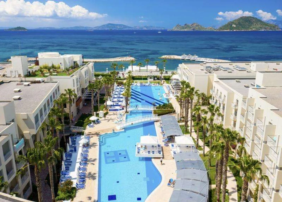Hotel se nalazi na jednoj od najlepših plaža ovog dela turske rivijere, odmah prekoputa ostrva Kos. Promenada koja prolazi pored hotela ide direktno do centra mesta Turgutreis.