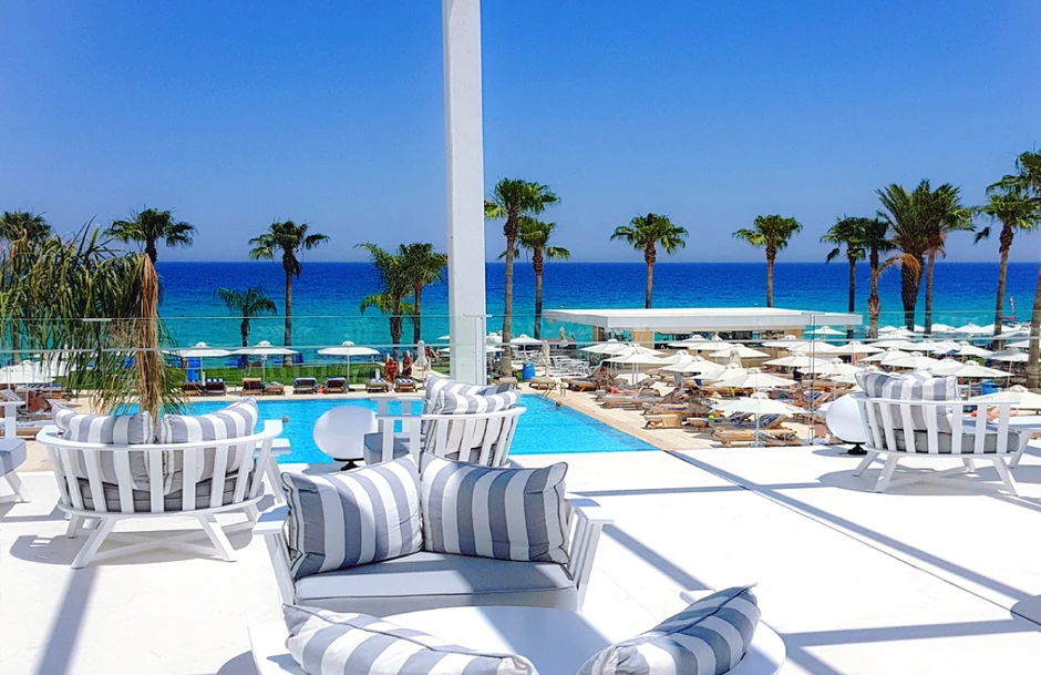 Otmen i elegantan hotel, smešten je na jednoj od najlepših peščanih plaža u regiji, u samom centru Protarasa, 47km od aerodroma u Larnaki. Sve sobe, prostor oko bazena i restoran, renovirani su u potpunosti pred sezonu 2018. god. Od sadržaja hotel ima veliki spoljašnji bazen sa delom za decu, zatvoreni bazen, glavni restoran, a la carte restoran, bar u lobiju, koktel barove na plaži i pored bazena, prodavnicu suvenira, salon lepote, frizera, stoni tenis, animaciju, saunu, teretanu, parno kupatilo i teniski teren. Sobe su prostrane, sa balkonom, imaju SAT TV, telefon, fen, sef, mini frižider, ketler, wi-fi internet. U sobama upotreba sefa, frižidera i interneta dodatno se naplaćuje.
