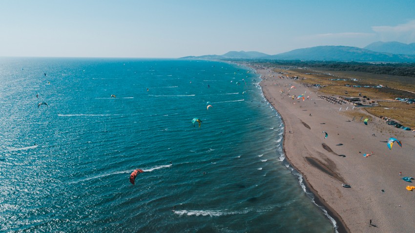 A leti se, itekako leti na Velikoj plaži, kajtesurferi iz celog sveta “doleću” upravo na ovu plažu da “uhvate vetar” i “zakače” sa za nebo svojim zmajevima… Velika plaža je od 2009. godine kada je tu napravljen prvi kajt klub “Dolcinium”, do danas popularizovana da je dostigla nivo „prestonice“ kajtsurfinga na Jadranu, koja može stati rame uz rame sa onima na Kanarskim ostrvima, Havajima, Portugalom, ili Egiptom, gde su ti sportovi i najpopularniji. Duž Velike plaže je petnaestak kajtsurf klubova koji pružaju obuku pa neki gosti planiraju letovanje u Crnoj Gori ciljano da bi se baš tu, u Ulcinju obučili tom sportu. Ove godine kajt klub “Dolcinium” je u julu proslavio 13-u sezonu, potpuno renoviran, sa ambijentom najegzotičnijih lokacija sveta, koji još uvek važi za najpopularniji klub na Velikoj plaži.