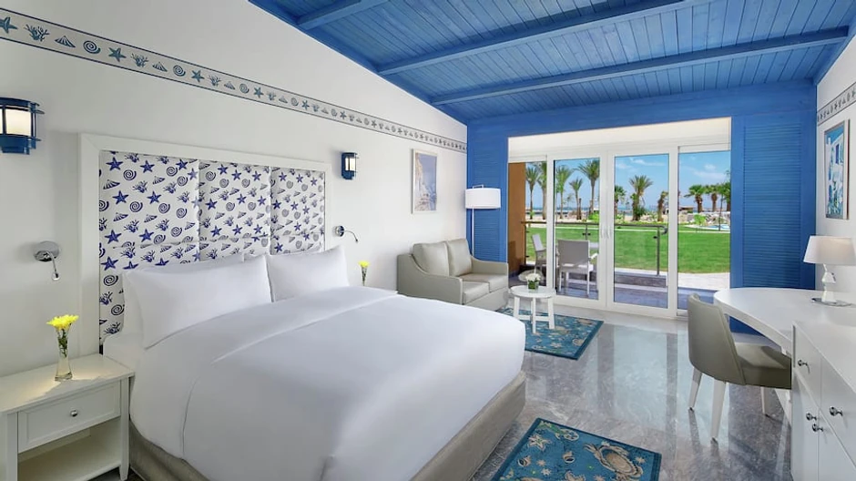 Poseduje 495 sofisticirano opremljenih smeštajnih jedinica, od kojih najveći broj ima spektakularan pogled na plažu, more i vrtove sa palmama, koje se lagano pokoravaju toplom, egipatskom vetru. Sve sobe su moderno dizajnirane i savremeno opremljene, svaka od njih ima klima uređaj, SAT LCD TV, sef, mini bar, ketler i set za kafu, kupatilo opremljeno sa kadom i tuš kabinom, Wi-Fi internet. U izdvojenom delu hotela, smeštene su Premium sobe, koje su nešto drugačije uređene, pa poseduju čak i sopstvenu kuhinju.