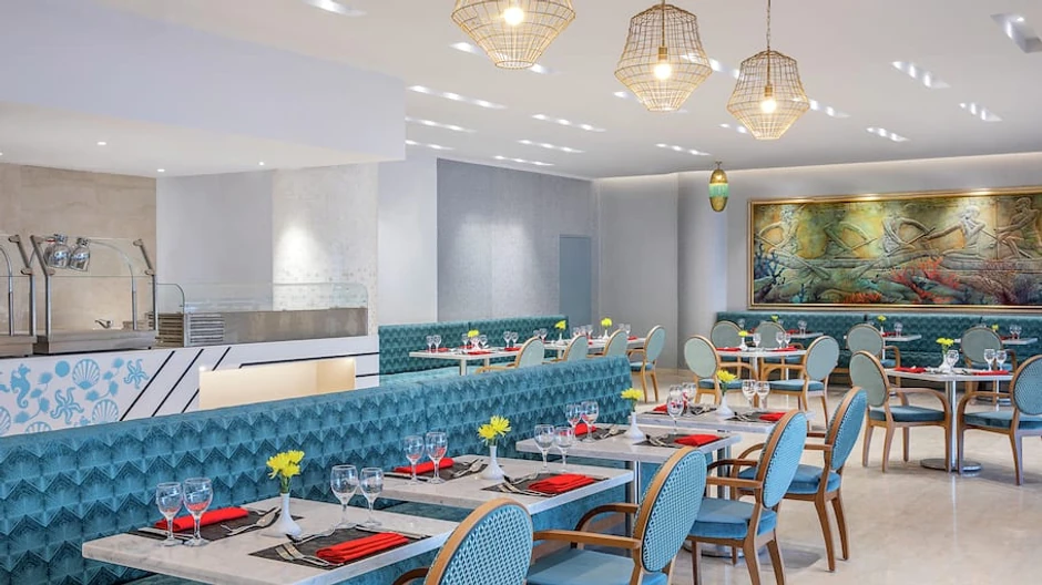 Hotel nudi All Inclusive uslugu, a pored glavnog restorana, poseduje i dva a la carte restorana (azijska kuhinja i kuhinja hrane morskih plodova). Pokušaćemo da vam rečima dočaramo gastronomsku ponudu i izuzetno ljubazno osoblje glavnog restorana. Ukoliko ste gurman, uživate u tradicionalnim specijalitetima, ali i inovacijama iskusnih kuvara, koji su ujedno dekorisani i servirani sa toliko pažnje, da vam je prosto žao da narušite taj sklad, ovaj segment može ozbiljno ugroziti fenomenalne utiske koje na goste ostavljaju plaža, bazeni i relaksacija na suncu.
