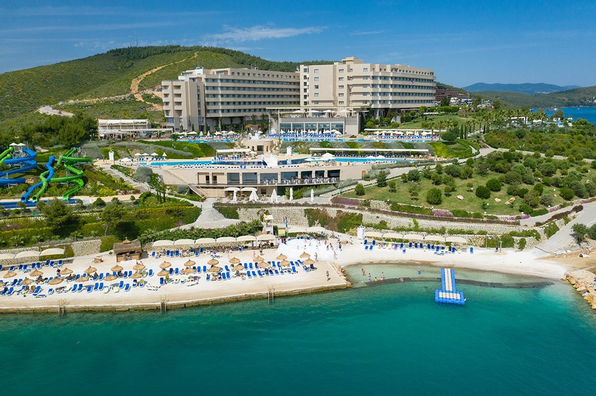 Hotel će vas zasigurno zadiviti svojim prostranstvom, na površini od 82.000 m2 - privatna plaža, otvoreni i zatvoreni bazeni, brojni a la carte restorani, akva park, spa centar, teretana…A tek za mališane, mini klub, igralište, dečiji bazeni, pregršt animacija i aktivnosti. Dok se oni dobro zabavljaju na svoj način, a kad ste već u Turskoj, vi ne propustite da upotpunite odmor opuštanjem na turski način, u turskom kupatilu – hamamu, gde ćete duh i telo pripremiti za potpuno uživanje na egejskoj obali.