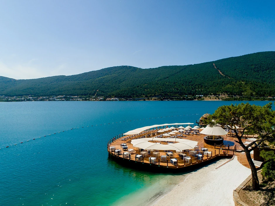 Na oko 17 kilometara od aerodroma, u okolini mesta Guvercinlik, na sopstvenom poluostrvu, nalazi se La Blanche Island 5*, koji će vam pružiti sve o čemu maštate, a možda i više od toga. Po poluostrvu ste sigurno hodali, ali da li ste u hotelu na poluostrvu letovali?