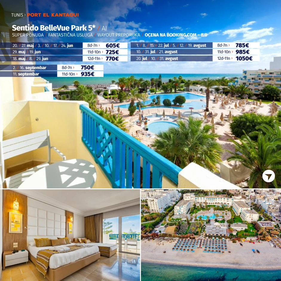 Port El Kantaoui je turističko naselje novijeg datuma, Nova Marina i bele kuće izgrađene u tuniskom stilu dominiraju ovim delom Tunisa. Nalazi se 10km od centra Sousse. Hotel iz ovog mesta kome bismo posvetili posebnu pažnju je Sentido BelleVue Park 5*, porodičan i miran hotel sa aqua parkom.