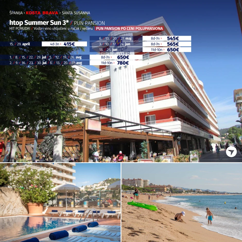 Zabavne aktivnosti se organizuju u prelaznim meseci i tokom sezone. Hotel Summer Sun je udaljen 45 km od Aerodroma Žirona Costa Brava. Letovalište Blanes je udaljeno 6 km, a gosti mogu uživati u izletima do Barselone do koje se vozom stiže za oko sat vremena.