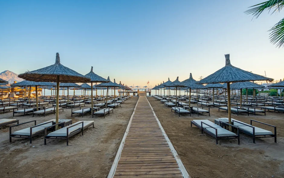 Turkiz Deluxe Resort 5* nalazi se u Kemeru, na svojoj plaži, a od sletanja na aerodrom u Antaliji, deli vas vožnja od 58 km, dok je za posetu centru i obilazak starog grada Antalije potrebno prevaliti nešto manje – 44 km. Hotel je renoviran 2020. godine, plaža je šljunkovita, a korišćenje ležaljki i suncobrana se ne naplaćuje dodatno, već je uključeno u uslugu.