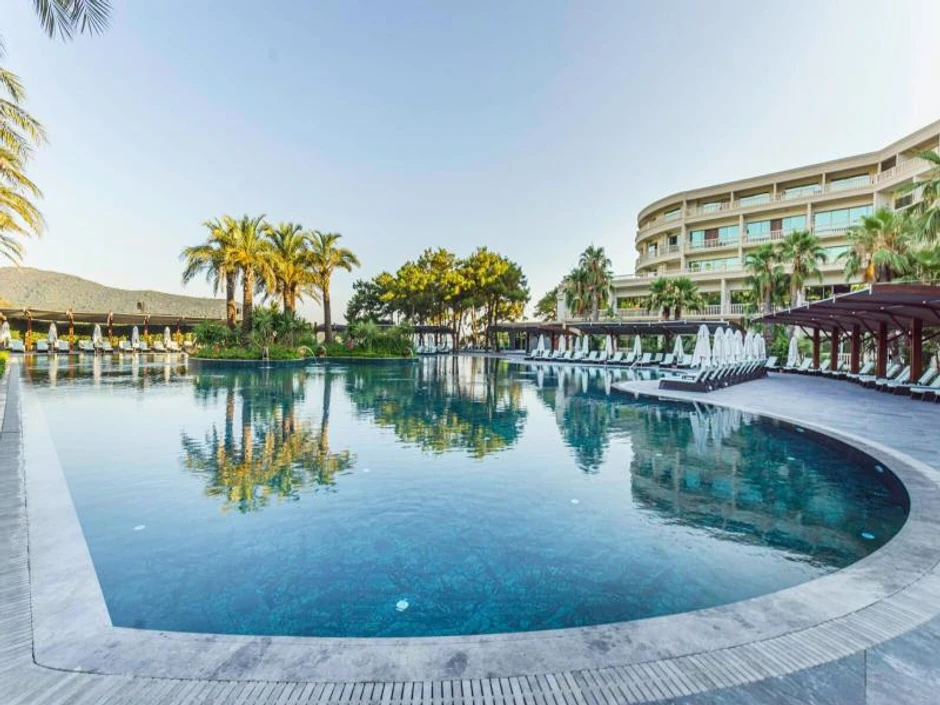 Iako na samo 8 kilometara od centra Bodruma, dobro je sačuvan od gradske žurbe, sakriven u zalivu nad kojim se nadvijaju ljupka brdašca. Njegovo sjajno prirodno okruženje – zelenilo trave, drva palme i beli pesak – iskorišćeni su kao inspiracija za dizajn ovog velelepnog kompleksa ukrašenog mnoštvom bazena.