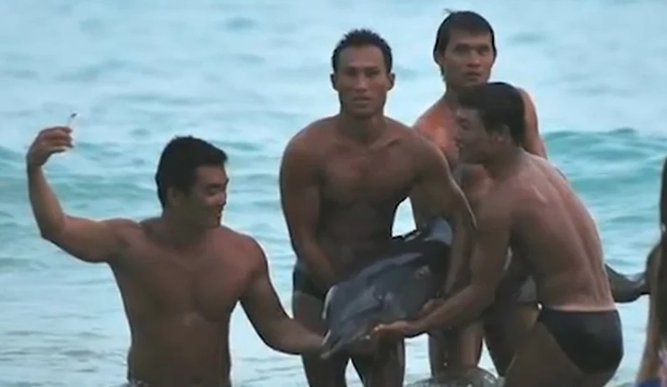 Kada je grupa turista u junu naišla na ranjenog delfina koga je udario čamac u vodama kineske provincije Hainan, umesto da pokušaju da mu pomognu, oni su počeli da se slikaju sa njim i pokazuju svoje mišiće, da bi životinja na kraju uginula zbog velike količine izgubljene krvi.