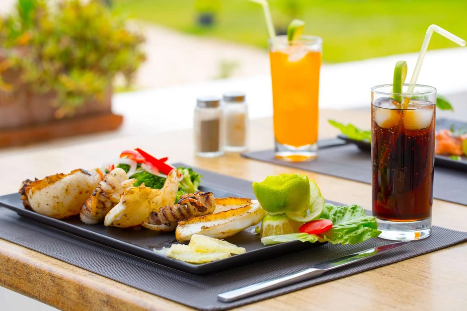 Usluga u hotelu podrazumeva princip all inclusive - samoposluživanje, izbor više jela po hotelskim pravilima u glavnom restoranu. Osim glavnog restorana, gostima su na raspolaganju dva a la carte restorana, od kojih je jedan sa nacionalnom, tuniskom kuhinjom. Osim toga, široka ponuda hladnih i toplih napitaka, sladoleda i nargile u tri hotelska bara.