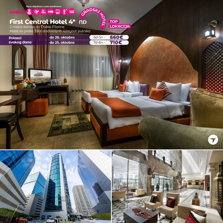 Ovaj fenomenalni hotel idealno je lociran i nalazi se na poznatom Sheikh Zayed putu. Najveći šoping centar na svetu, Dubai Mall, je udaljen svega nekoliko minuta hoda od hotela. U neposrednoj blizini su i Dubai International Financial City, Dubai Media City i Internet City. Sa svojih 333 metara visine, odnosno 72 sprata jedan je od najviših hotela na svetu! Hotel raspolaže sa preko 480 moderno uređenih soba sa pogledom na centar grada. Sve sobe imaju kuhinju i kupatilo ( tuš kabina/kada, telefon ), klima uređaj, 26inch LCD sat TV, telefon, sef, bežični internet. Room servis je dostupan 24h. Hotel poseduje spa centar, fitnes centar, otvoreni bazen, dečiji bazen, 3 restorana, biznis centar, salu za konferencije, medicinsku pomoć, limo centar, parking. Hotel je pogodan i za osobe sa invaliditetom.