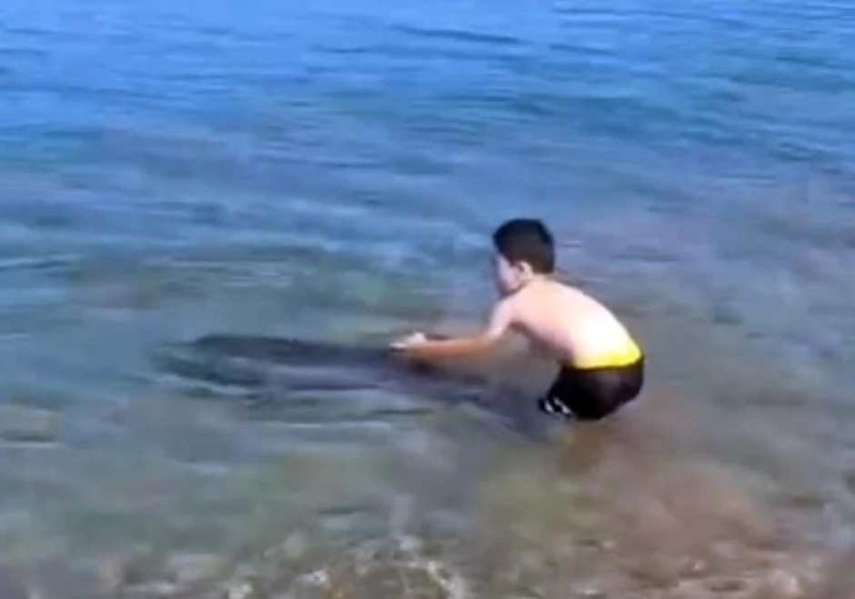Kako se vidi na snimku objavljenom na instagram profilu "nikana.gr", kupači na jednoj plaži kod Kavale imali su priliku da vide redak prizor. Naime, mali delfin zalutao je do plićaka, te plivao uz plažu sa jednim mališanom.